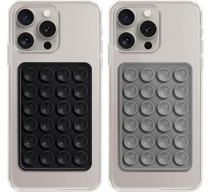 INEFABLE Suction Phone Case, Phone Suction Sticker, Silicone Suction Phone Case for Hands-Free Mobile Accessory Holder Grip, Video Phone Accessory (Black,Dark Grey – Pack of 2)