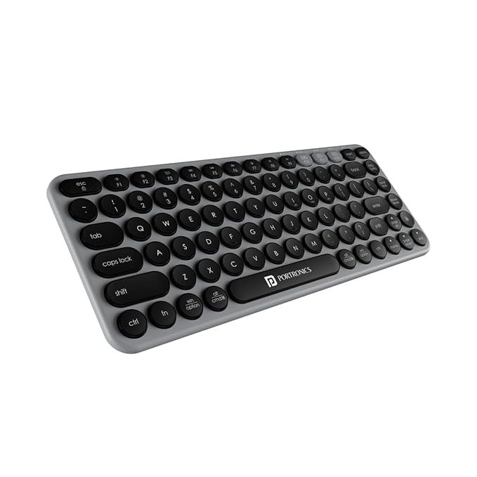 Portronics Bubble 2.0 Wireless Keyboard with Bluetooth + 2.4 GHz Receiver, Connect 3 Devices, Compact TKL Size, 10m Working Range, Function Shortcut Keys, for Laptop, PC, Smartphone, Tablet (Grey)